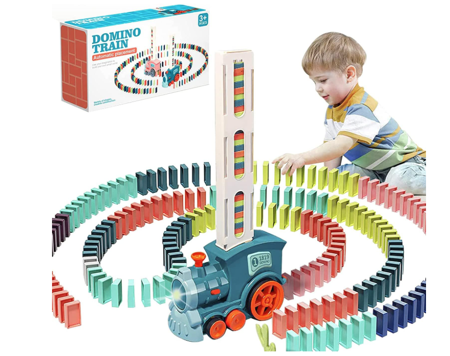 يمكن للعبة قطار الدومينو وضع مسارات الدومينو تلقائيًا لإضافة المزيد من المرح إلى لعبة تساقط الدومينو. سيتم الفصل بين كل قطعة دومينو والأخرى بمقدار 1.5 سم، وسيضع القطار الصغير القطع من الجزء الخلفي من القطار عند تشغيله، ويمكن للأطفال أيضًا وضعها بمفردهم.